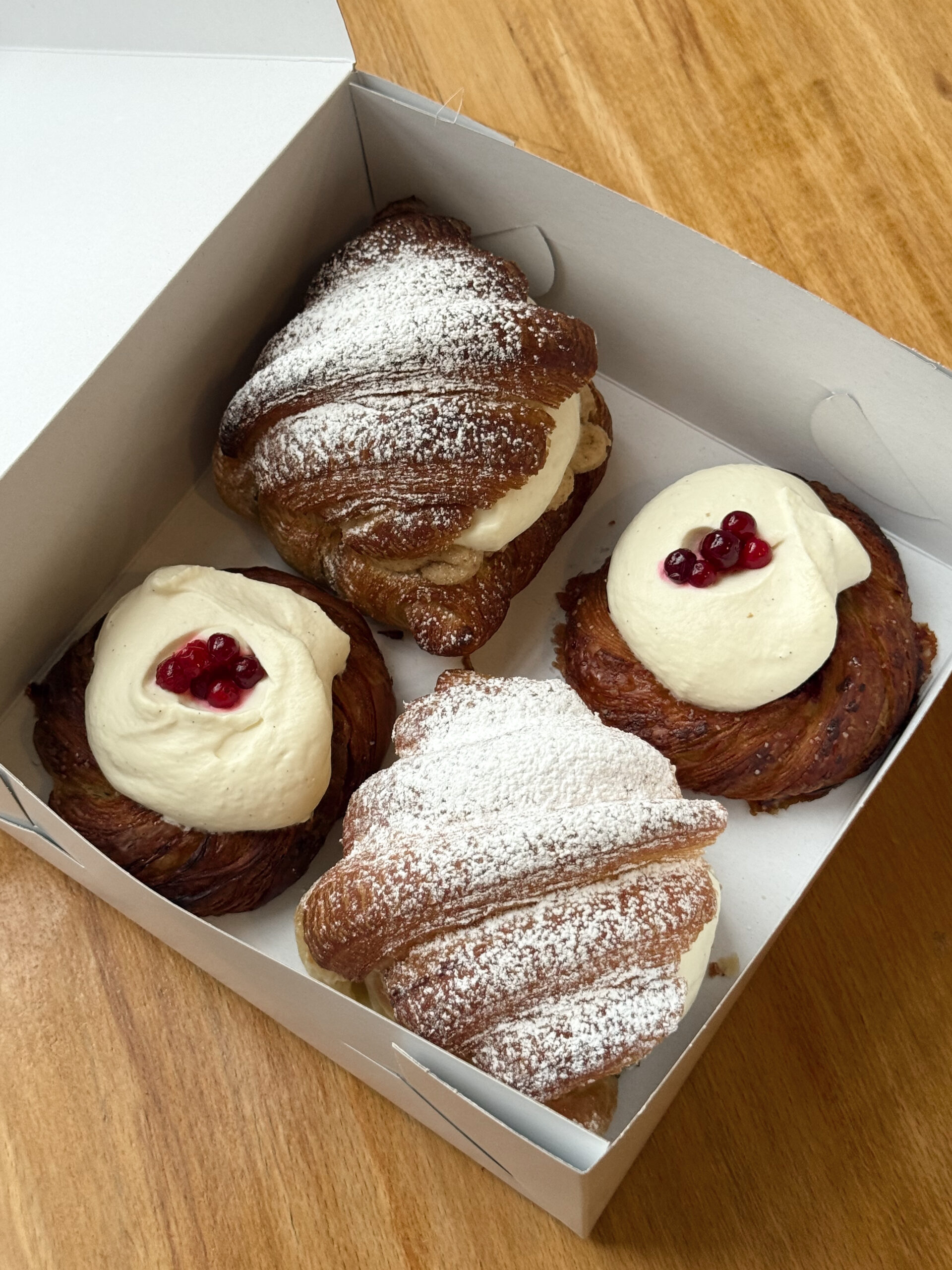 Vastlacroissantid on täidetud röstitud mandlikreemi ning vanilje vahukoorega
